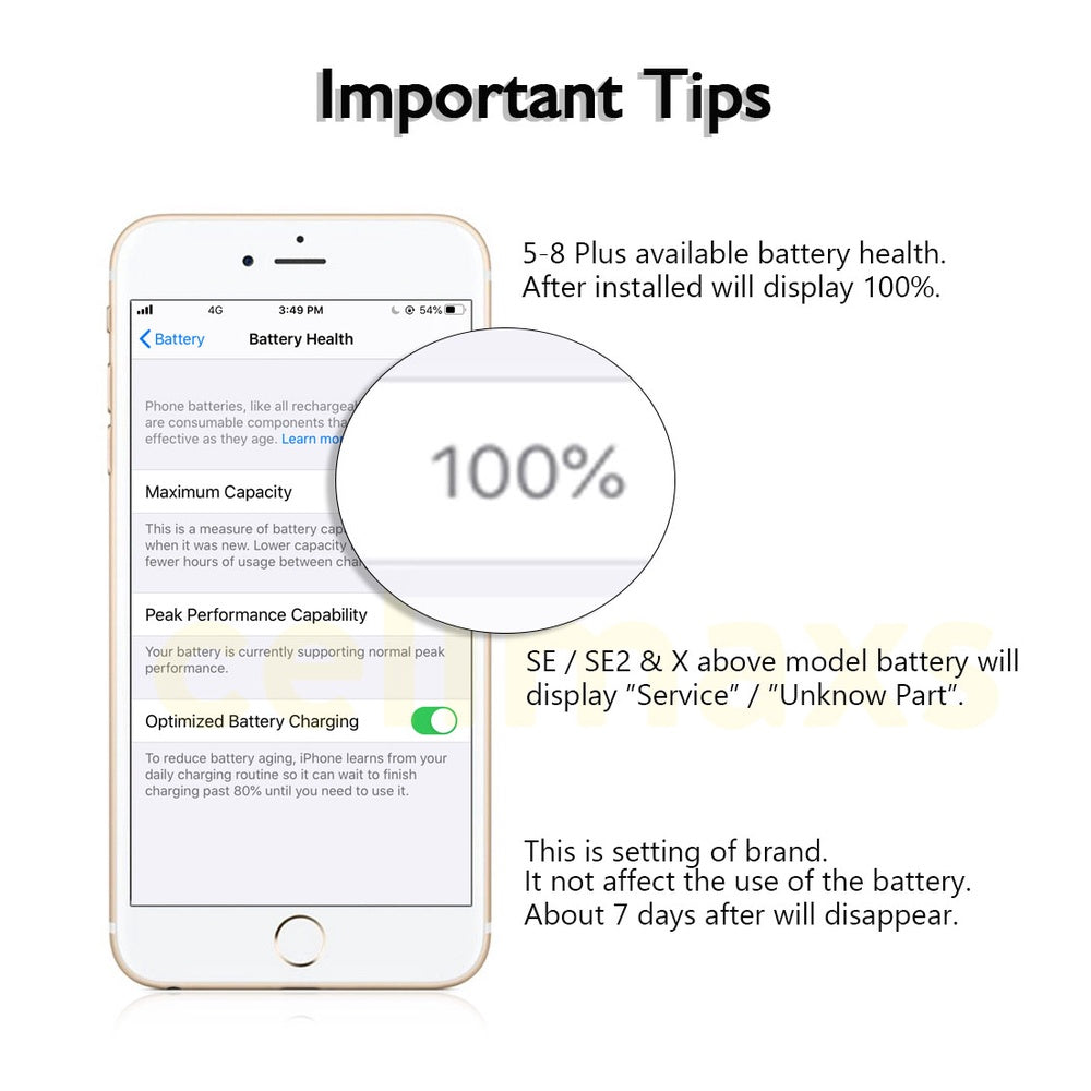 IMPORTANT TIPS: • FOR X AND BELOW GENERATIONS, THE BATTERY HEALTH WILL SHOW 100% • FOR SE 2020 / XS... Read more